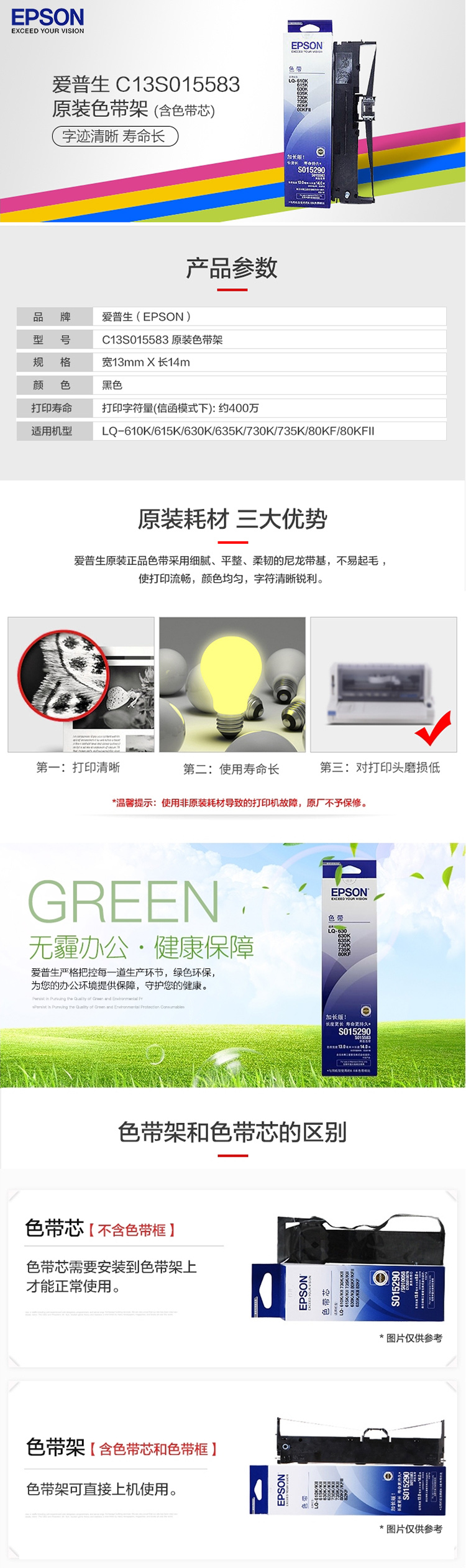 | 适用机型 | LQ-610K;LQ-615K;LQ-630K;LQ-635K;LQ-730K;LQ-735K;LQ-80KF;LQ-610KII;LQ-615KII;LQ-630KII;LQ-635KII;LQ-730KII;LQ-735KII;LQ-80KFII;LQ-82KF |