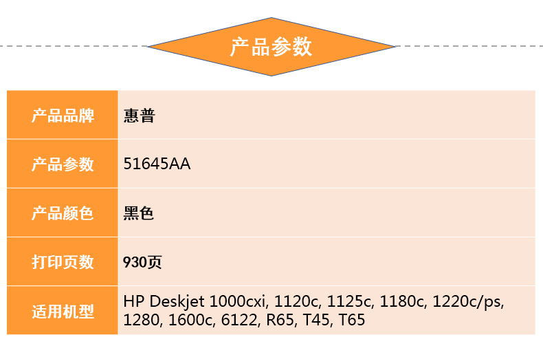| 适用机型 | (适用 喷墨打印机:HP Deskjet710c,830c,850c,870cxi,880c,890c,895cxi,930c,950c,970cxi,990cxi,1120c,1125c,1180c,1220c,1280,1600c,6122,9300) |