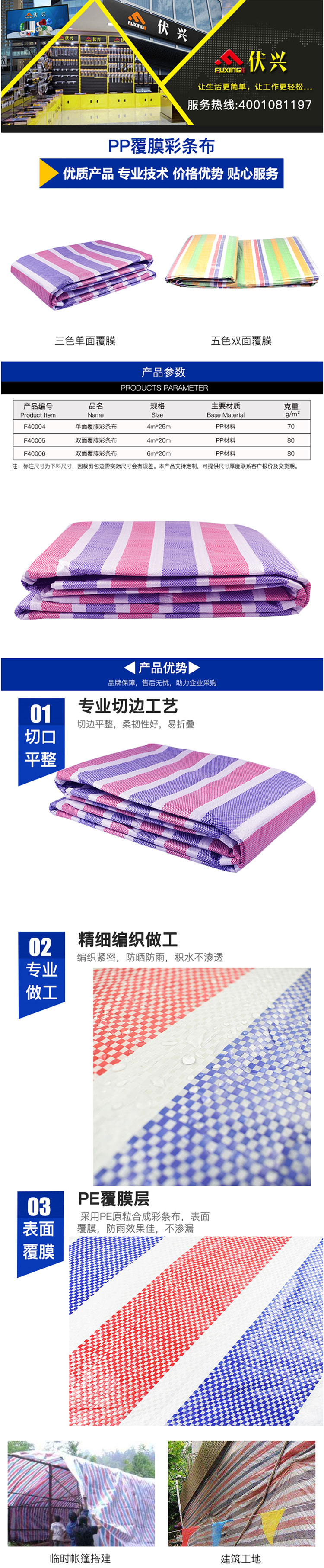 伏兴 FX978 防水布彩条布防雨布 三色单层覆膜 2*14m按组销售   收藏
