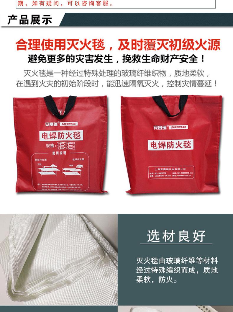 安赛瑞 12544 电焊防火毯 灭火毯 玻璃纤维 厚度1mm 3平方米起订按平方米销售   收藏