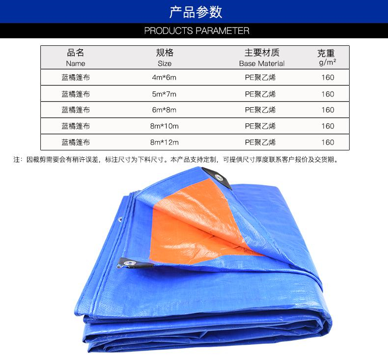 供应商:史泰博 品牌:伏兴 产地:中国 重量:0.000KG 销售单位:张 包装清单:篷布防雨布 塑料防水布遮雨遮阳pe蓬布 蓝橘色*1